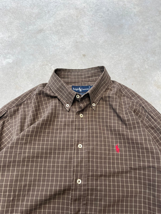 1990S - POLO RALPH LAUREN BROWN BUTTONED SHIRT - XL