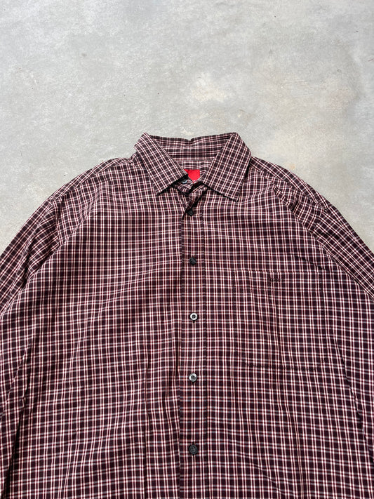 1990S - PLAID BUTTON DOWN SHIRT - XL