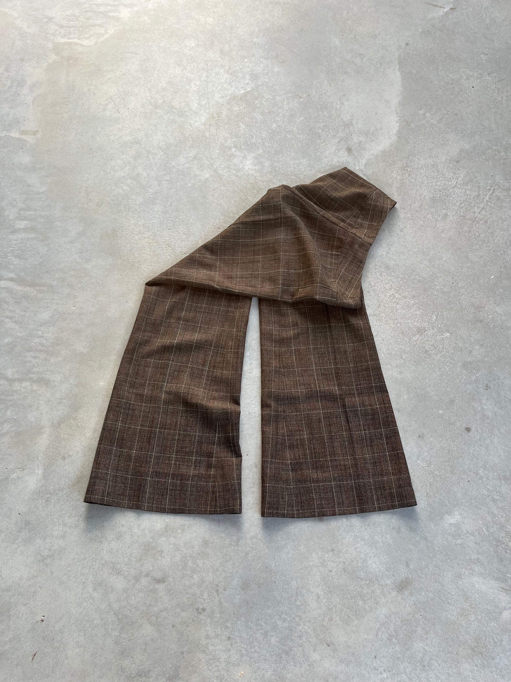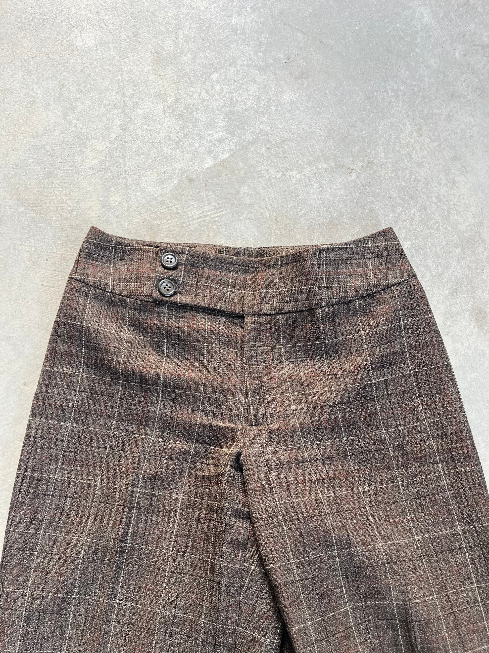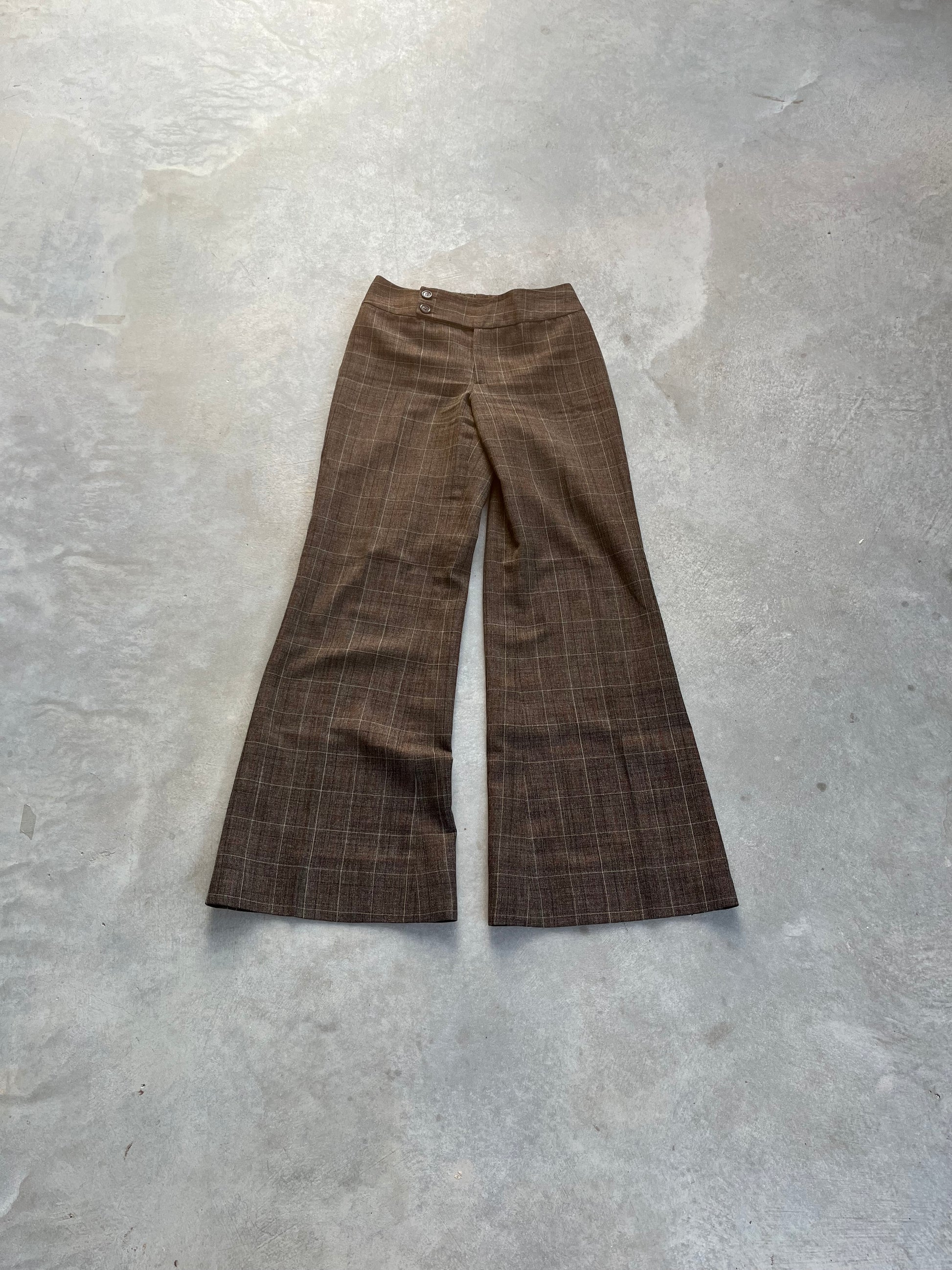 1990S - BROWN PLAID FLARED WIDE LEG TAILORED PANTS - 34