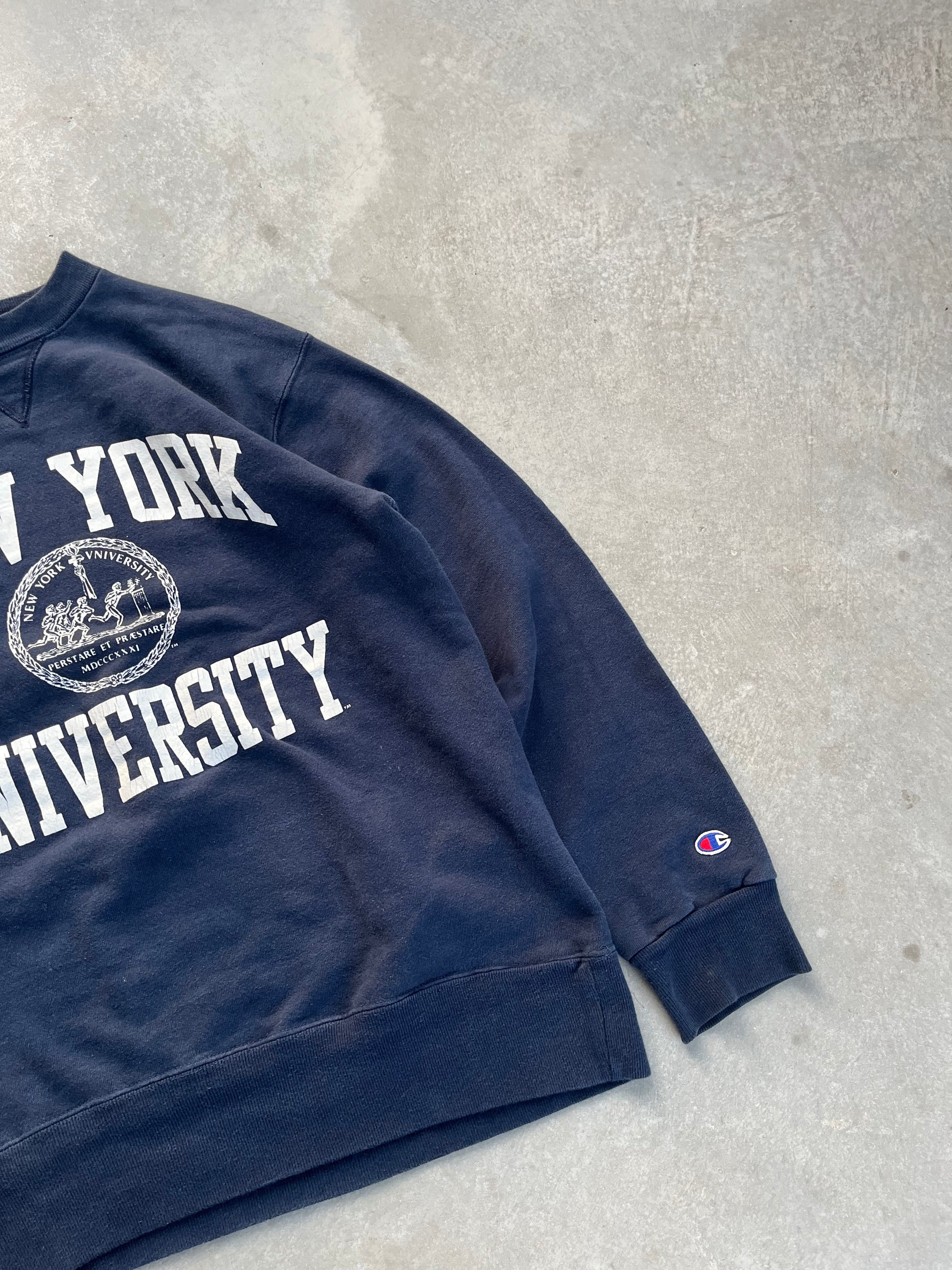 1990S - CHAMPION „NEW YORK UNIVERSITY“ NAVY CREWNECK - XL