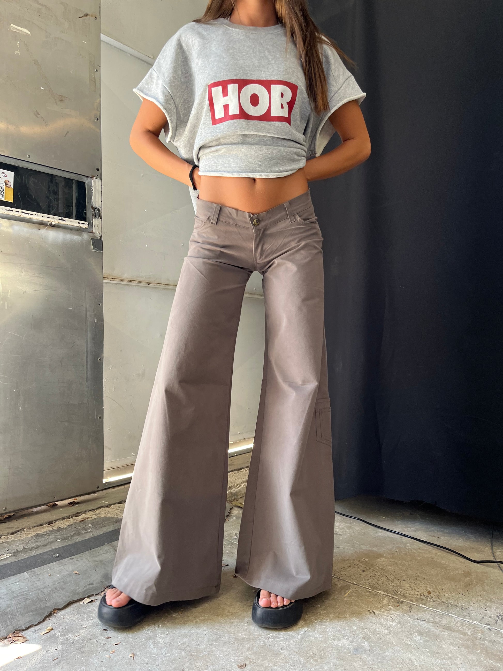 2000S - GRAY DEAD STOCK SIXTIES TZIPPY LOW RISE FLARED JEANS - 34/36
