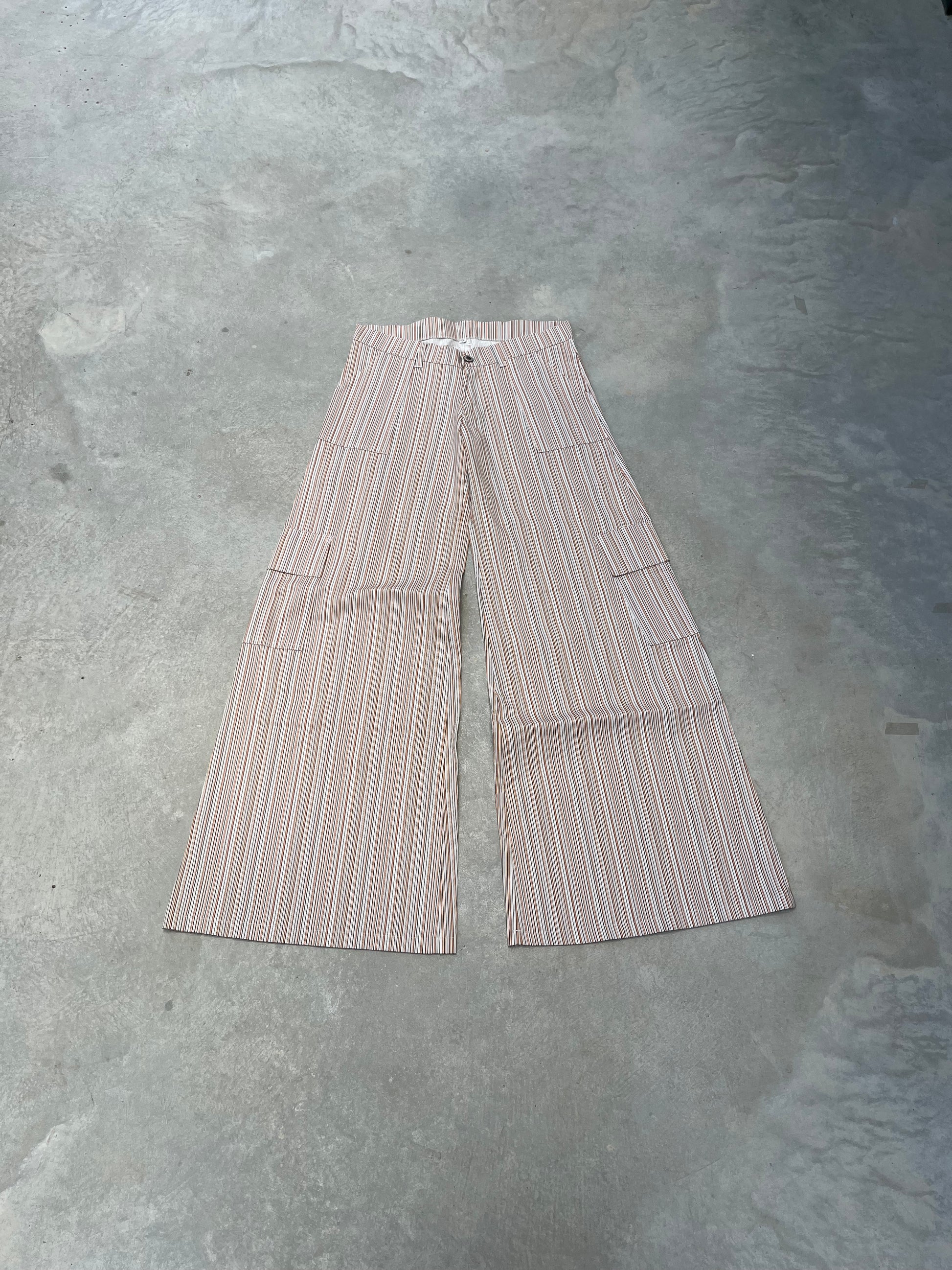 2000S - STRIPED DEAD STOCK SIXTIES TZIPPY LOW RISE FLARED JEANS - 38