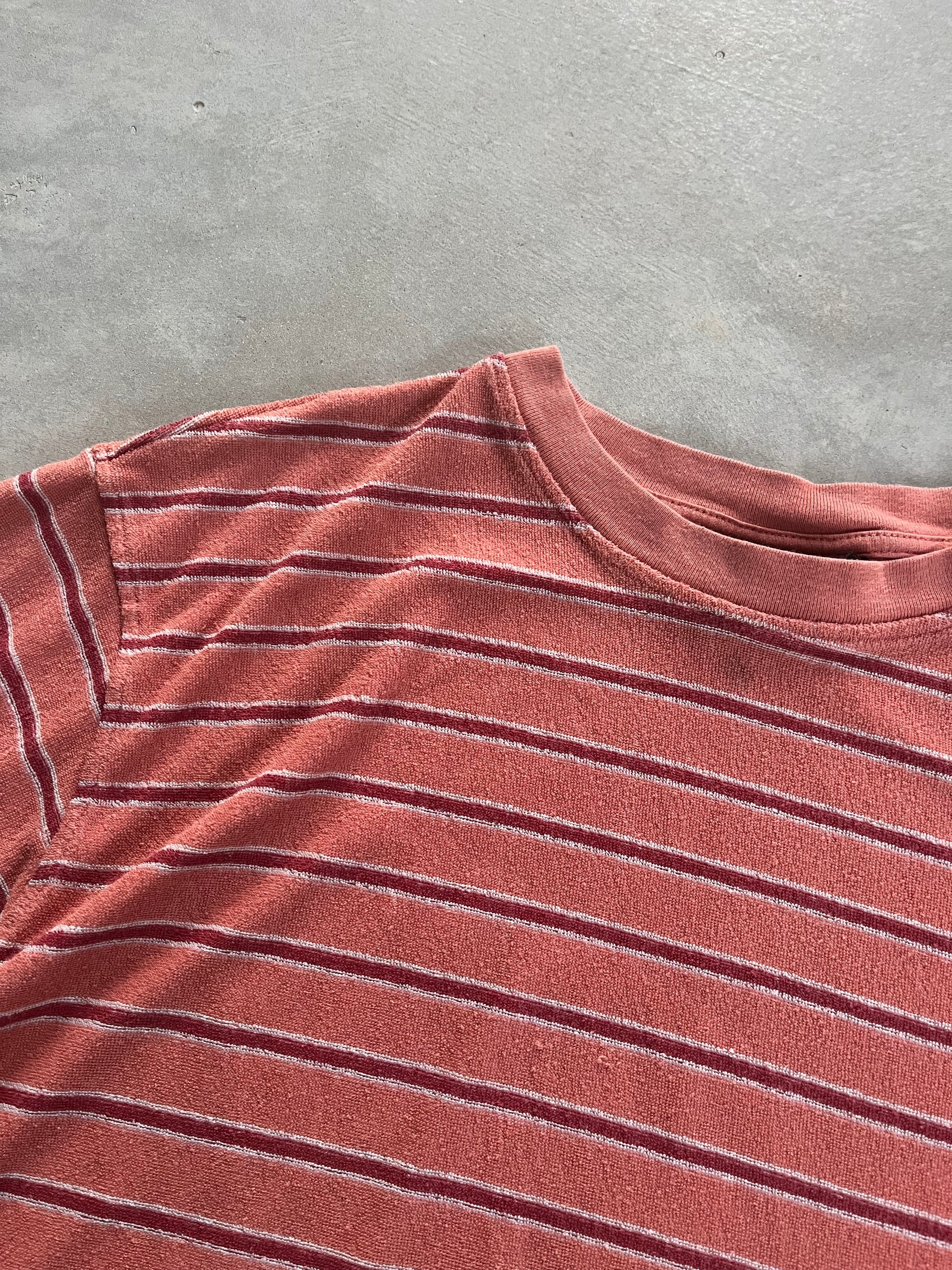 2000S - STÜSSY PINK & BORDEAUX STRIPED TSHIRT - L